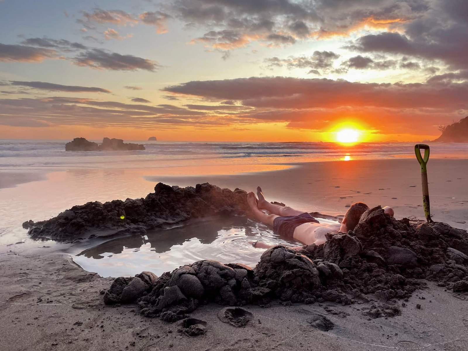 Abends haben wir ganz in der Nähe auf dem Waikite Valley Hot Pools Campground übernachtet und in den campingeigenen Thermalquellen entspannen. Auch Tagestouristen können die heißen Thermalquellen nutzen – eine Übernachtung ist also nicht zwingend notwendig. Schon beim Ankommen kann man die besondere Atmosphäre spüren, denn aus gefühlt jeder Ritze im Boden und sogar aus dem Gullideckel steigt Dampf auf. Das praktische daran: Über den Dampfaustrittsstellen wurden kleine Hütten aufgestellt, in denen ihr eure Badesachen/nassen Klamotten trocknen könnt. Nach einer entspannten Auszeit im Pool, solltet ihr euch für den nächsten Tag wappnen, denn es gibt noch mehr in dieser Region zu entdecken.