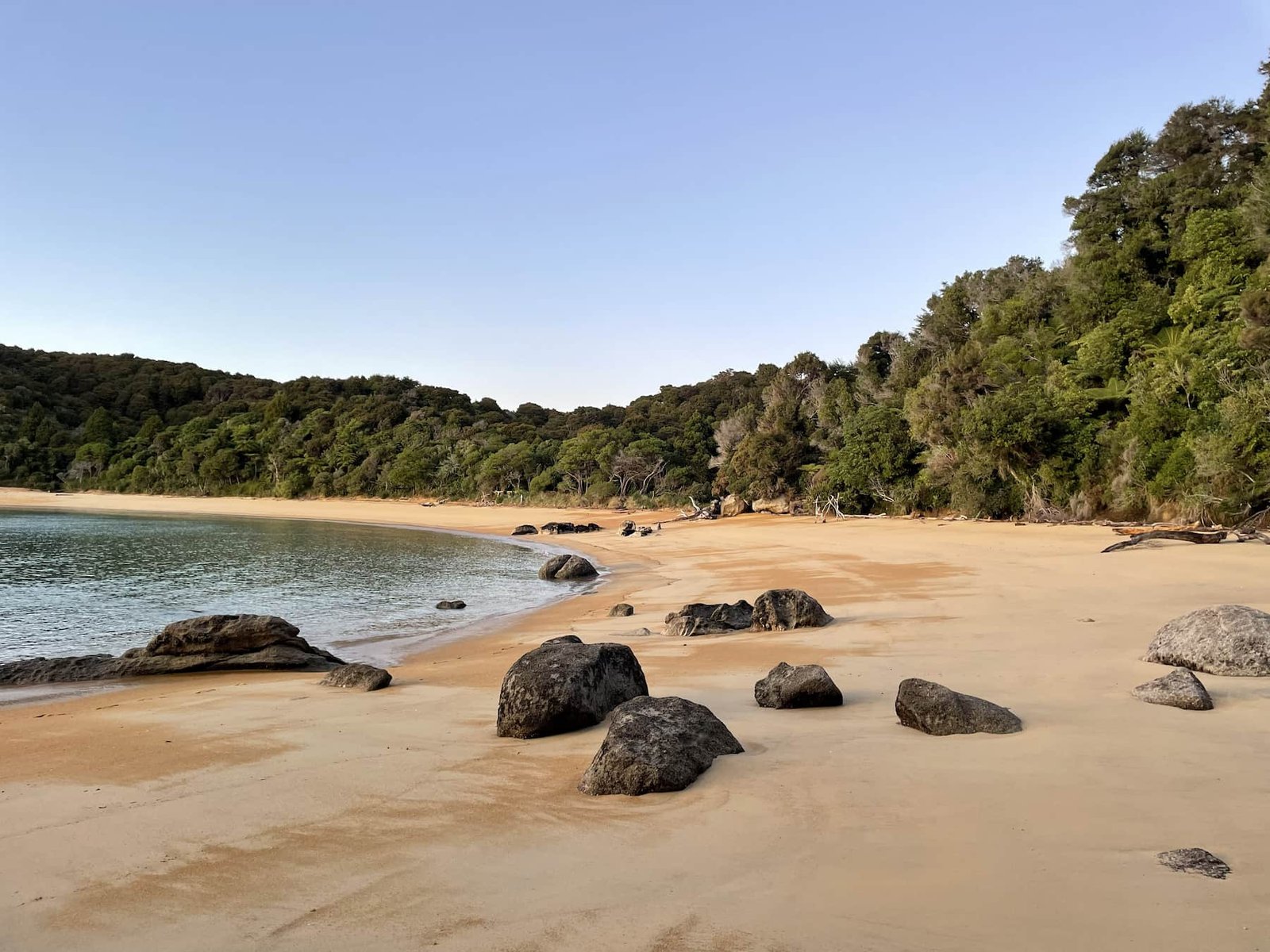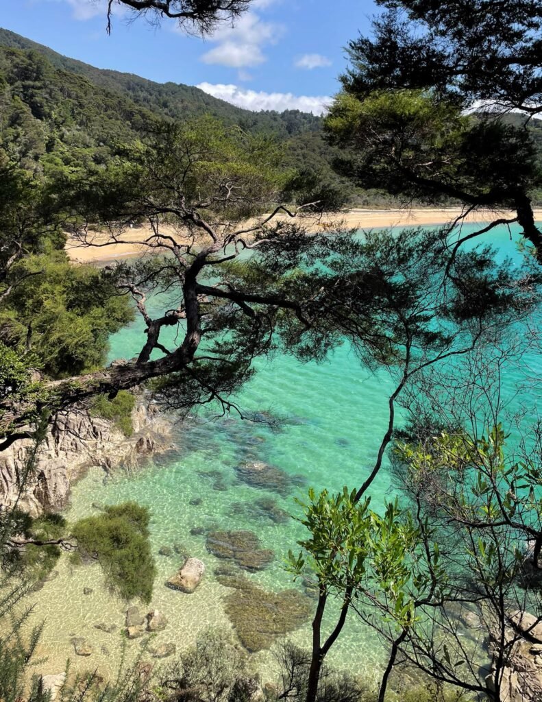 Highlight im Nationalpark ist definitiv der Cleopatra Pool, der Torrent Bay View Point, die Falls River Swing Brücke und die unzähligen türkisblauen Buchten – vergesst also nicht eure Badesachen mitzunehmen! Die schönsten Campingplätze liegen unserer Meinung nach in der Anchorage Bay (kalte Outdoor-Dusche sowie Feuerstellen), der Bark Bay (traumhaft schöner Sandstrand und türkisblaues Wasser, aber wenige Schattenplätze) und der Onetahuti Bay (Rochen in der Bucht).