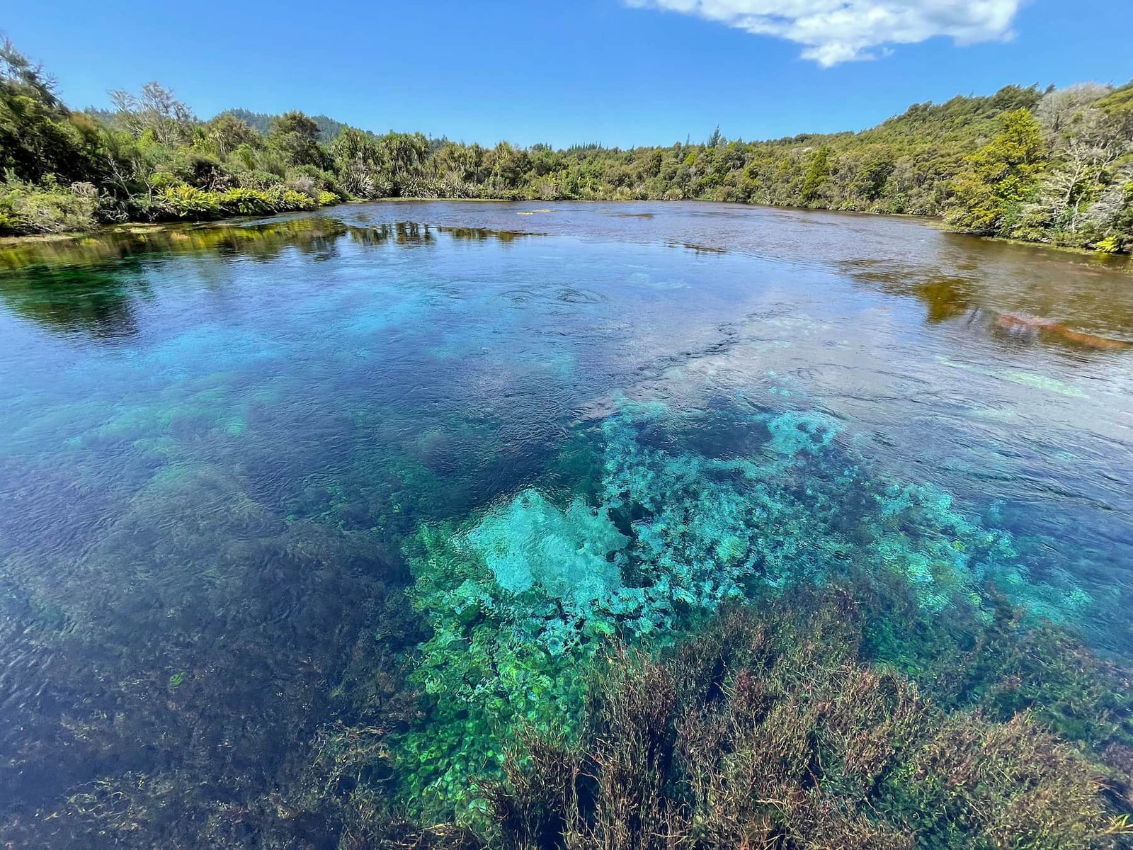 Nach unserer intensiven Wanderung im Abel Tasman Nationalpark ging es weiter in Richtung Cape Farewell, dem nördlichsten Punkt der Südinsel. Auf dem Weg dorthin haben wir uns aber noch die wunderschönen Te Waikoropupu Springs – kurz Pupu Springs – angeschaut, die ihr euch wirklich nicht entgehen lassen solltet! Ein kurzer Weg über einen Holzpfand (20 min.) führt euch zur türkisblauen Quelle, die mit ca. 63 Metern Sichttiefe einer der klarsten natürlichen Wasserquellen der Welt ist – vergleichbar mit dem Schmelzwasser in der Antarktis. Absolut crazy! Außerdem ist sie ein heiliger Māori-Ort, an dem früher rituelle Waschungen durchgeführt wurden. Schwimmen ist also leider nicht erlaubt, auch wenn das Wasser extrem einladend aussieht. Die türkisblaue Farbe und die bunten Unterwasserpflanzen sieht man übrigens am besten bei Sonne & Windstille.