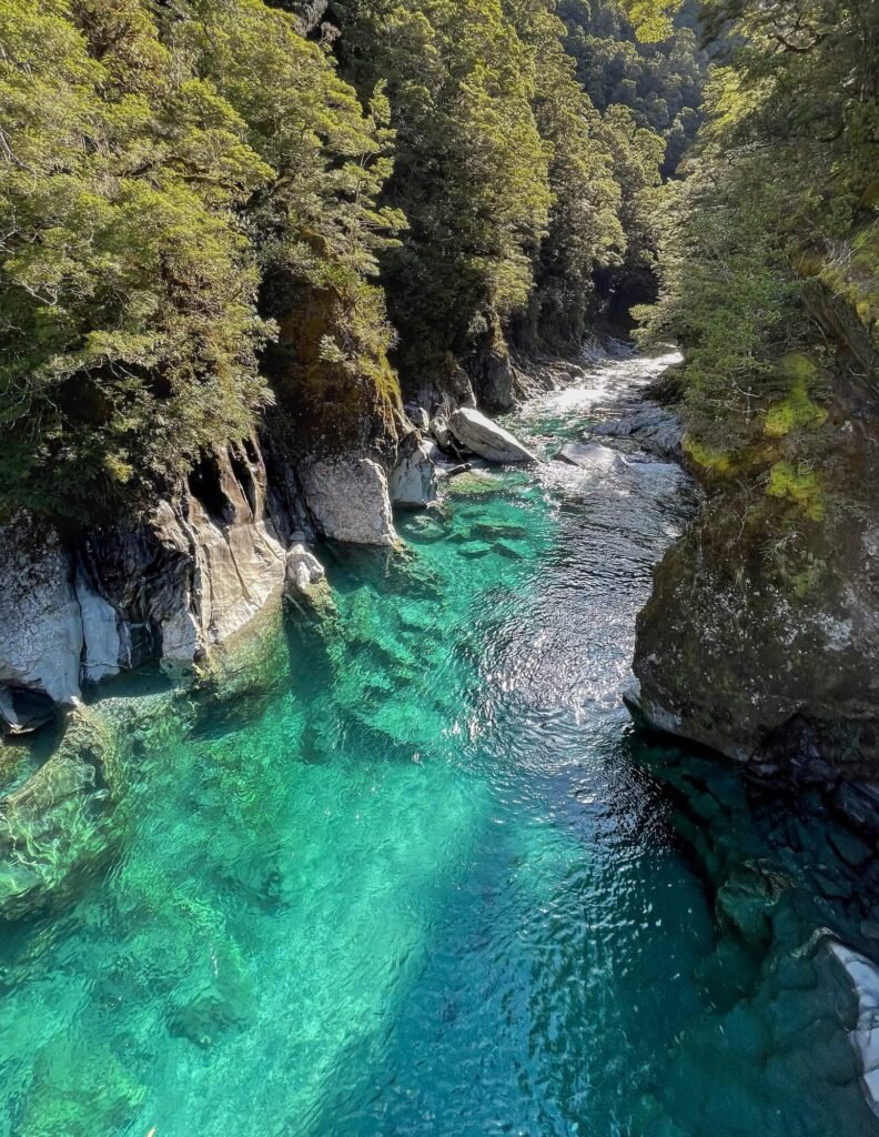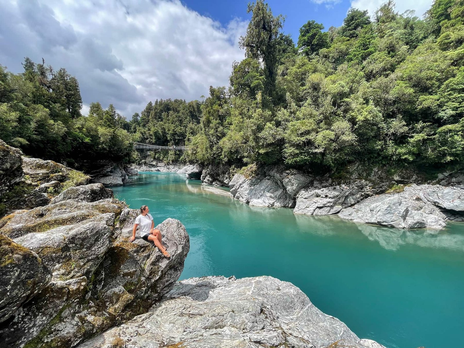 Die Hokitika Gorge selbst liegt etwa 30 min. östlich von Hokitika und ist ein absoluter Traum in türkisblau – die intensive Farbe des Wassers entsteht übrigens durch das sogenannte Rock Flour (winzige Gesteinspartikel eines Gletschers, die das Sonnenlicht reflektieren). Wer genau das festhalten möchte, sollte am besten früh morgens oder am späten Nachmittag kommen, wenn die Sonne am besten steht und am wenigsten los ist. Vergesst nicht etwas langärmliges anzuziehen, da es von Sandflies nur so wimmelt!