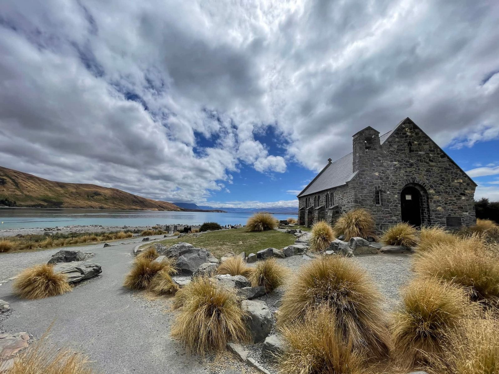 Lake Tekapo war der dritte und letzte Gletschersee auf unserer Tour durch das Landesinnere und darf unserer Meinung nach auf keiner guten „Must-see-Liste“ fehlen, auch wenn es sehr touristisch und voll werden kann. Was den See von den anderen besonders abhebt: Jedes Jahr zwischen Frühling und Frühsommer verwandelt sich das Seeufer und die umliegenden Wiesen in ein buntes Blütenmeer aus rosa, lila, blau, gelb und weiß leuchtenden Lupinen – mit dem türkisblauen Wasser des Sees und den schneebedeckten Südalpen im Hintergrund ein Fotomotiv, das selbst erfahrene Fotografen kurz mal schwach werden lässt.