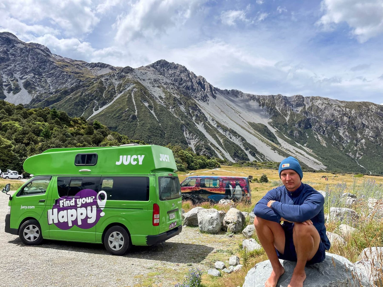 Wir haben direkt am Fuße des Mount Cook auf dem White Horse Hill Campground übernachtet – die Preise sind mit 20 NZD pro Person echt saftig, dafür ist die Lage einfach nur premium. Nicht weit entfernt davon liegt die winzige Nationalpark-Stadt Aoraki, in der ihr euch im Mount Cook Visitor Centre weitere Infos zu den verschiedenen Wanderungen oder auch Ausflügen holen könnt – es wirklich super schön aufgebaut und erzählt auf spielerische Art und Weise die Geschichte der Region. Gegen einen kleinen Aufpreis könnt ihr euch nach einer langen Wanderung am Mt Cook Public Shelter eine warme dusche gönnen, denn am Campingplatz gibt es nur Toiletten.