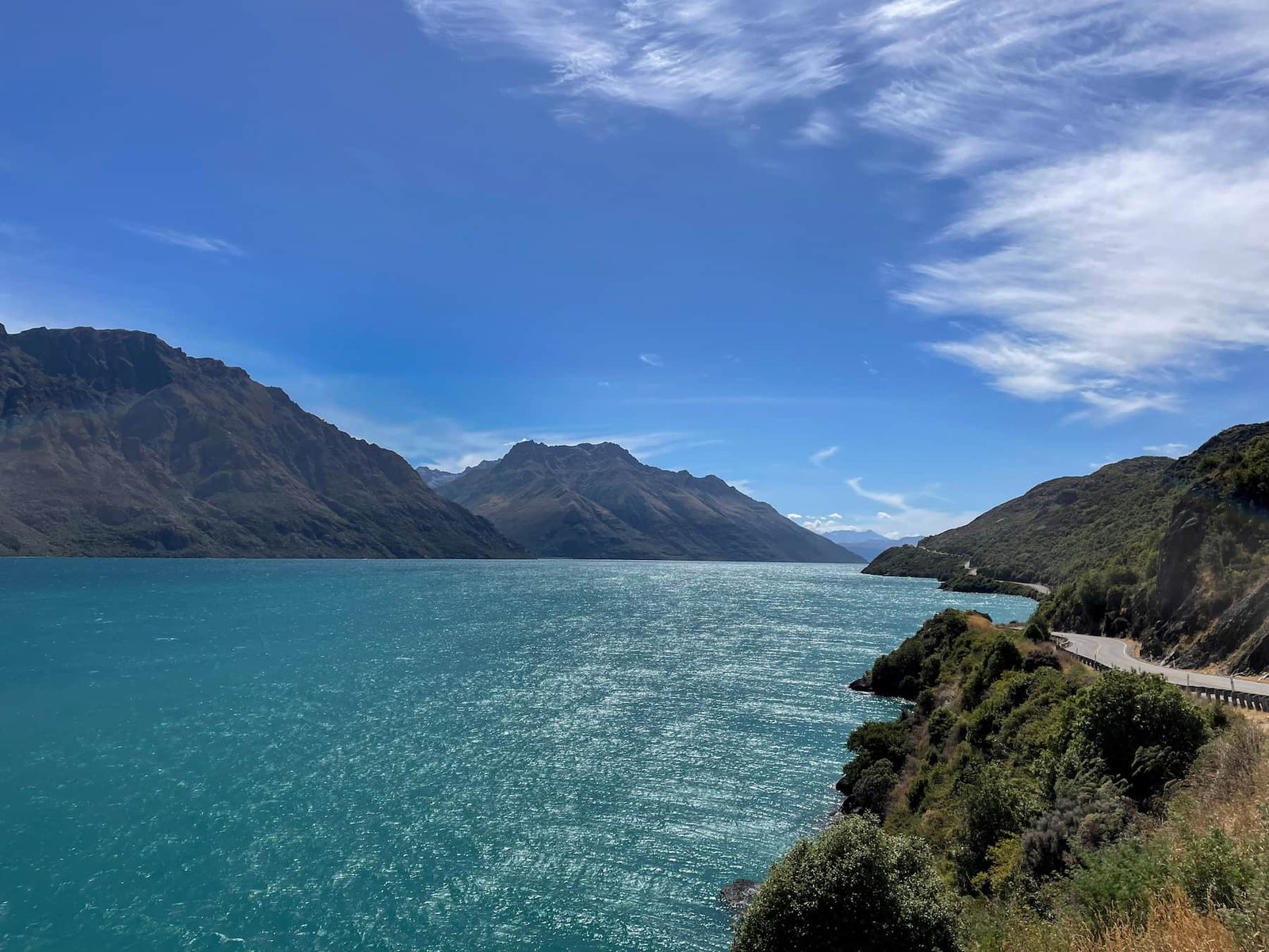 Nach der eiskalten Abkühlung ging es für uns weiter zum malerischen Lake Wānaka – einer der schönsten Bergseen der Südinsel und besonders bekannt für die ikonische Aussicht vom Roy’s Peak auf die Südalpen. Auf dem Weg vom Haast Pass in die Stadt kommt ihr vorher am Lake Wānaka Lookout vorbei, von dem aus ihr einen ersten Vorgeschmack auf die Region bekommt. Die Wanderung zum Roy’s Peak solltet ihr gut vorbereiten, denn mit 16 km und 1.100 Höhenmetern ist sie wirklich nicht zu unterschätzen – vor allem weil es keinen Schatten auf dem Weg nach oben gibt!