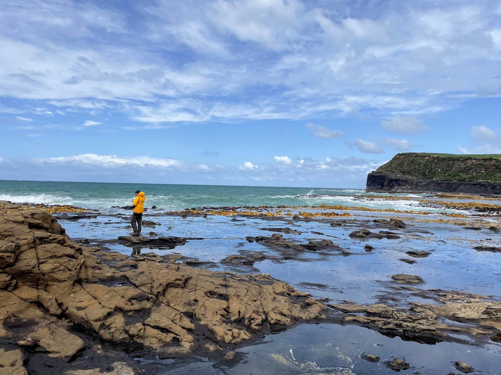Das Cape Farewell liegt ganz in der Nähe vom Wharariki Holiday Park – perfekt also, um gleich morgens mit einem Heißgetränk loszufahren und den Tag mit einer traumhaften Aussicht zu starten. Ihr könnt entweder hinfahren und vor Ort auf dem „Cape Farewell Lookout Parking“ parken oder über den Puponga Hilltop Walk zu Fuß laufen – ein abwechslungsreicher Küstenwanderweg mit Panoramablick auf die Tasmansee und hügeliger Farmlandschaft. Plant für die Wanderung am besten zwischen 3 und 5 Stunden ein (hin- und zurück) aber vergesst nicht eine windfeste Jacke mitzunehmen, denn uns hat es auf den Klippen buchstäblich weggeblasen!