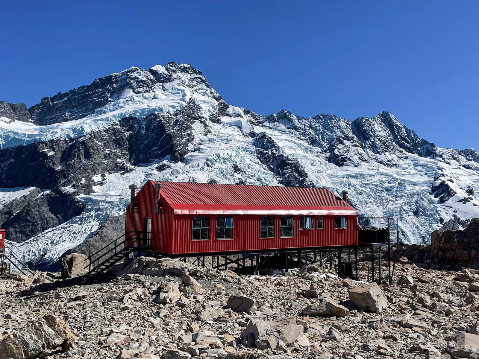 Mueller Hut mit Sicht auf den Hooker und Mueller Glacier