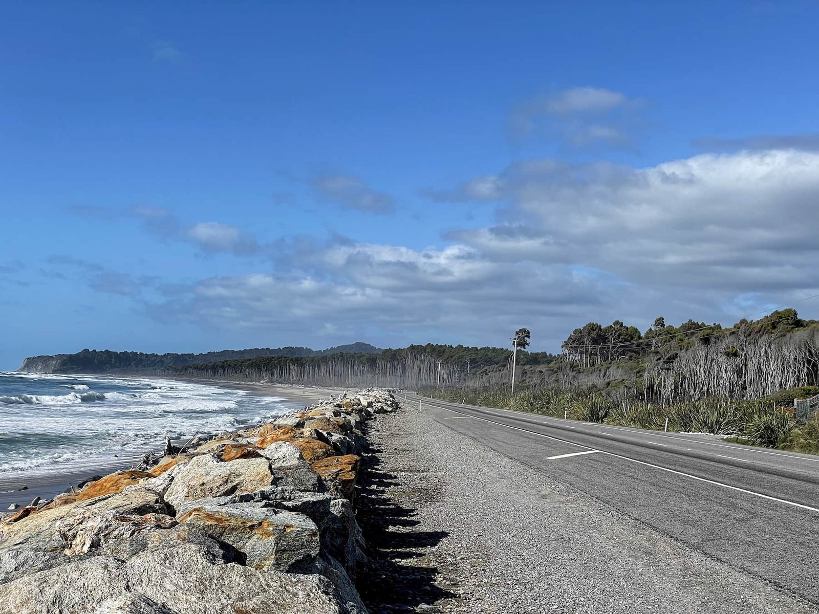 Leider endet die Straße wieder in Cape Fouldwind und ihr müsst wieder über Westport zurück fahren – eine super Gelegenheit um sich den Clock Tower im Art Déco Stil anzuschauen, der definitiv ein „Must-see“ der Stadt ist. Neben einem kleinen Stadtspaziergang haben wir die Zeit genutzt und haben direkt am Pier, neben dem M.V. Kaitawa Memorial eine Pause mit Blick auf’s Meer gemacht – es gibt definitiv schlechtere Orte!
