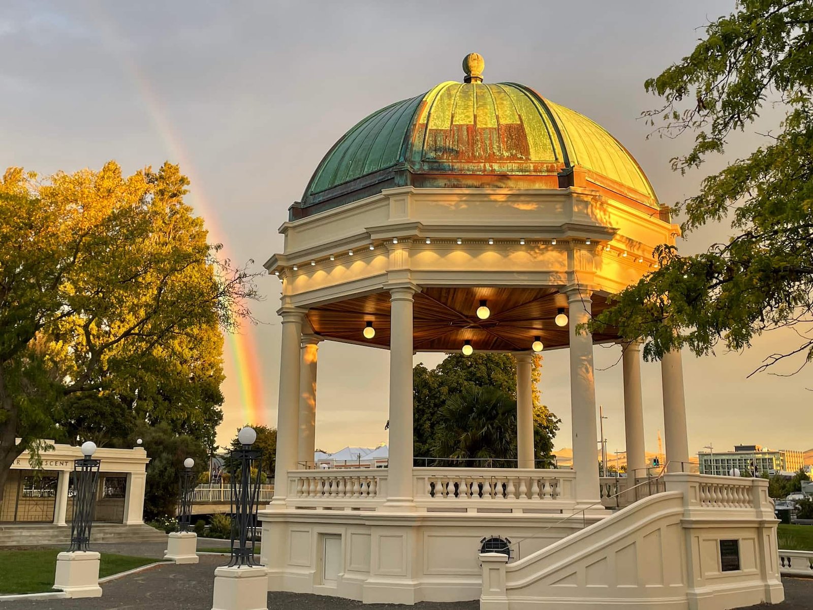 Zum Abschluss des Abends könnt ihr euch dann noch ganz in der Nähe den wunderschönen weißen Pavillon Gazebo“ mit grünem Kupferdacht und Holzfußboden anschauen – definitiv ein schöner Spot für eine kleine Tanz-Partie, auch tagsüber!