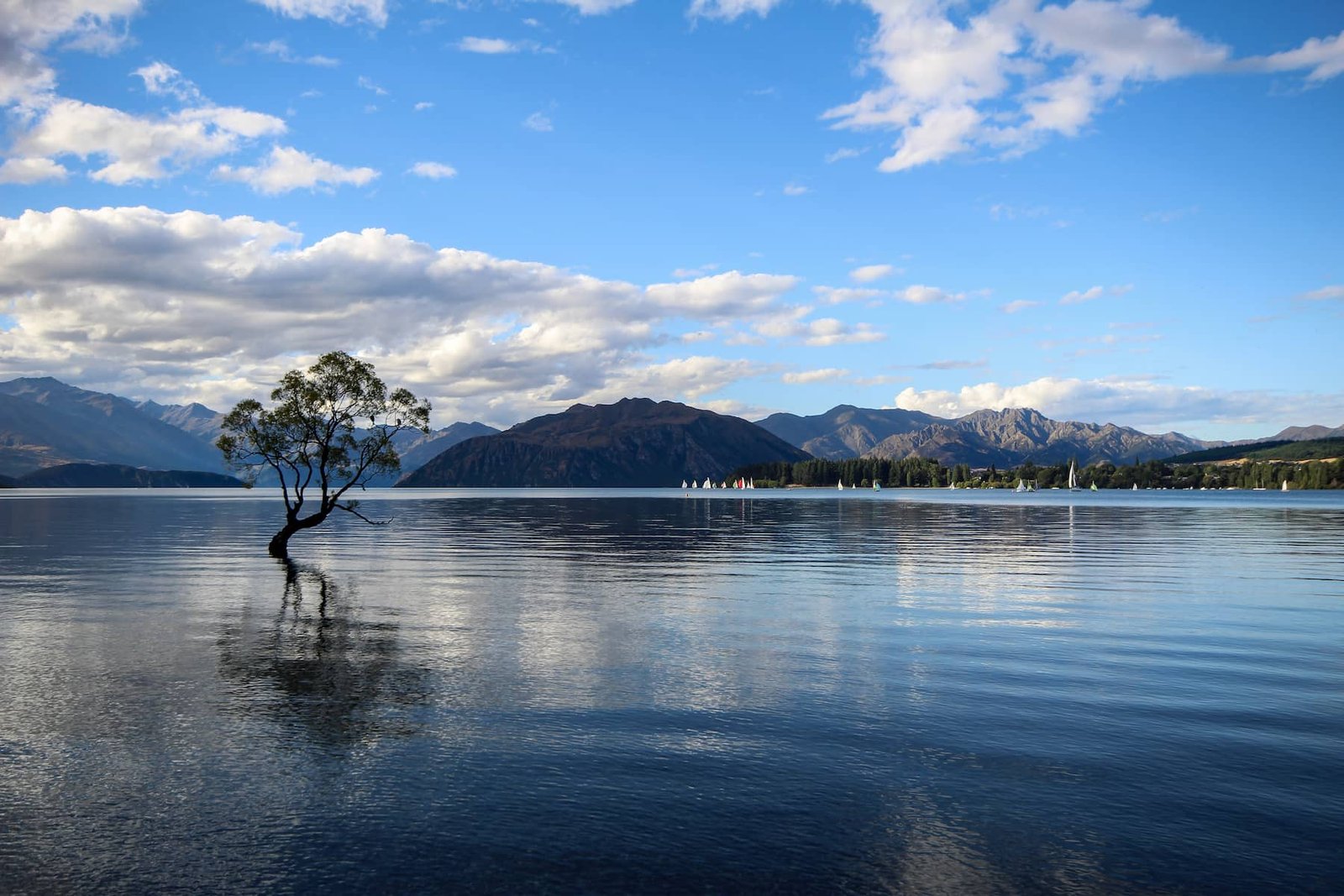 In der Stadt könnt ihr auf dem Wānaka Tree Carparking kostenlos parken und den Tag direkt am See verbringen, ohne aus dem Auto aussteigen zu müssen – zumindest wenn ihr einen Camper habt. Wir haben dort den Tag nach unserer Wanderung verbracht und einfach die Aussicht auf den See genossen – um ehrlich zu sein waren wir auch zu nichts anderem mehr in der Lage, haha. Außerdem ist es der perfekte Ausgangspunkt für einen kleinen Spaziergang zum berühmten Wānaka Tree – ein kleiner Weidenbaum, der mitten im See wächst und als „das Wahrzeichen“ der Stadt gilt. Vor allem früh morgens oder am späten Nachmittag/Abend könnt ihr mit den Bergen im Hintergrund unfassbar schöne Bilder machen – es gibt sogar eine eigene Insta-Fanpage mit Bildern von Reisenden.